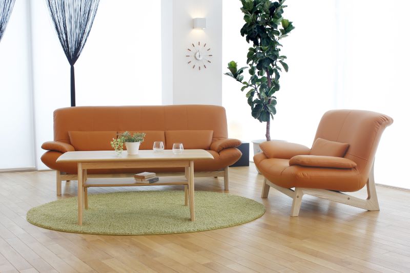 アサヒの張りと木部加工の技術が合わさったデザインです。少し深めのクッション性で包み込まれるような座り心地。張地は革、布、ソフトレザーにも対応しています。